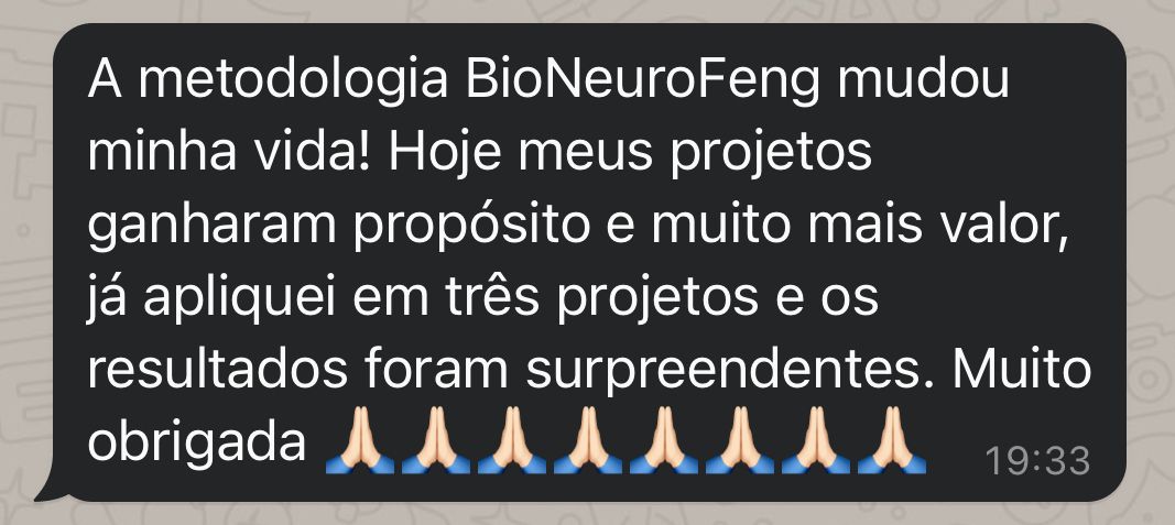 Aplicando a minha metodologia exclusiva do BioNeuroFeng em seus projetos, você cria esta realidade para a sua vida pois seus projetos serão carregados de valor e conhecimento.